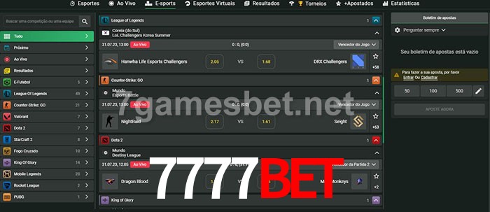 A aposta 7777bet oferece aos jogadores a experiência mais conveniente de apostas em eSports!